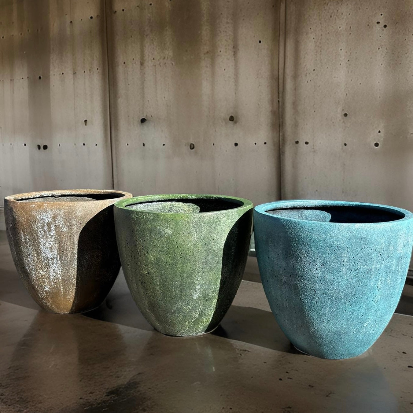 Fiberglass planters are made from high grade composite materials. This product is synthesized from many different materials such as unsaturated poly-resin, gelcoat, fiberglass mat, stone powder… the product is very strong impact resistance and stable colors.
