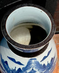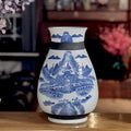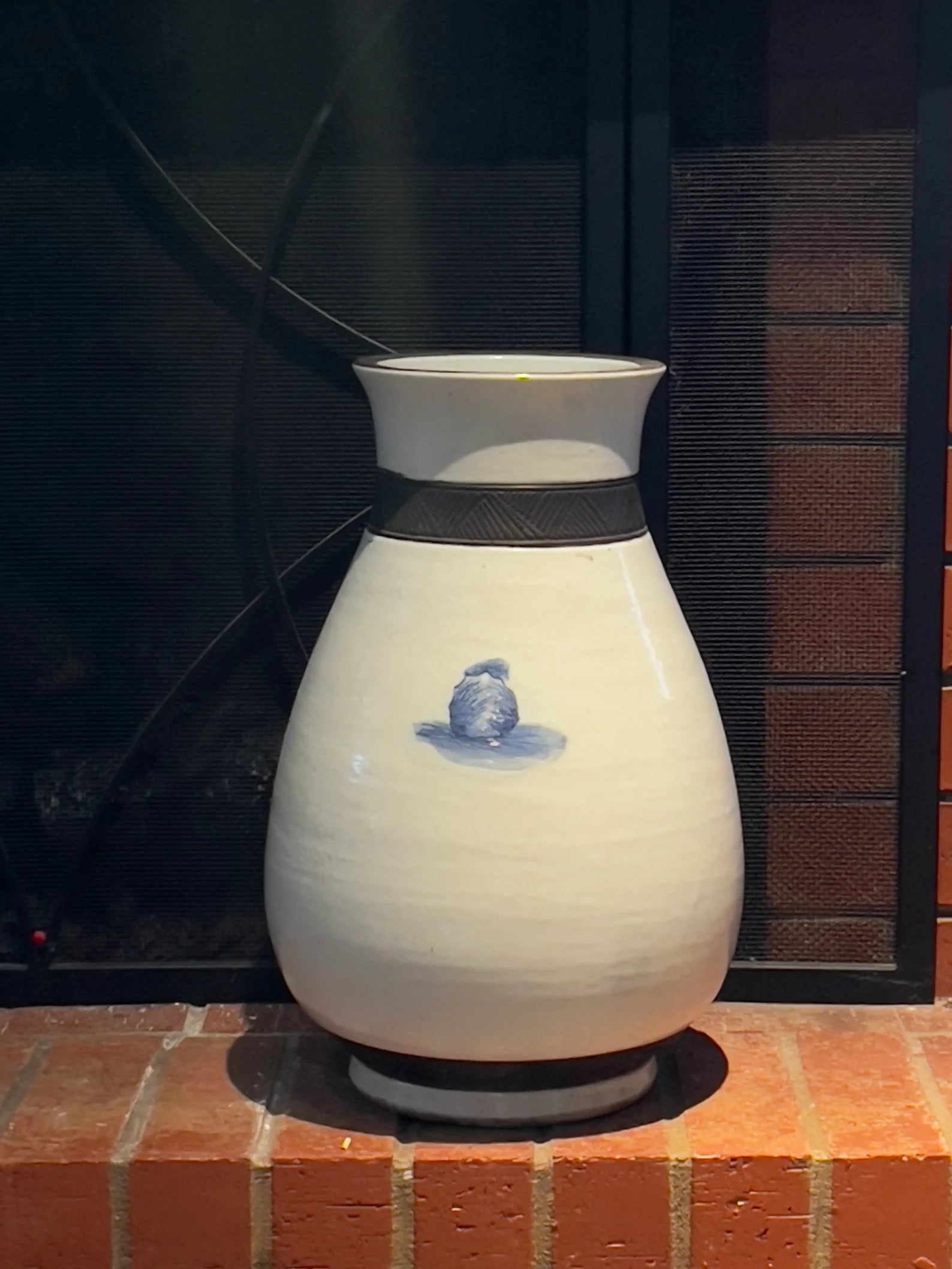 1940s - Vintage vase handmade beautiful with so much details stories -blue, white glazed