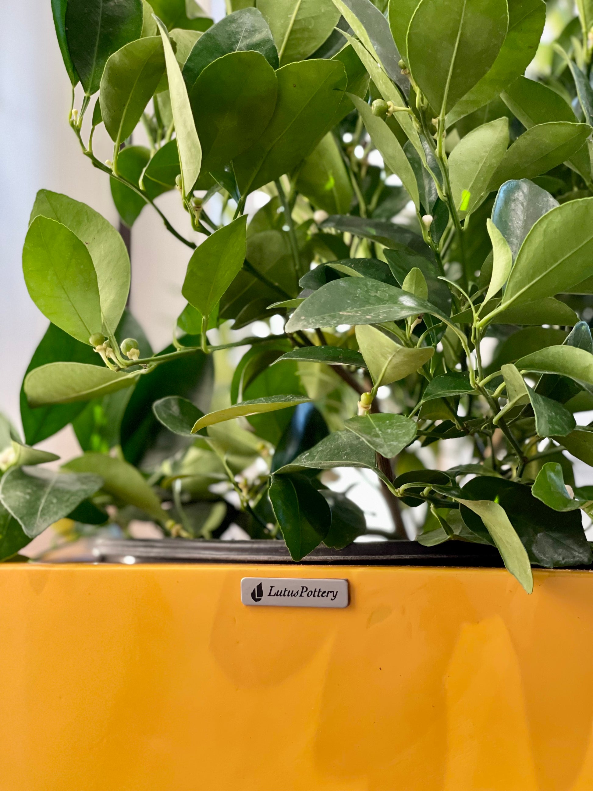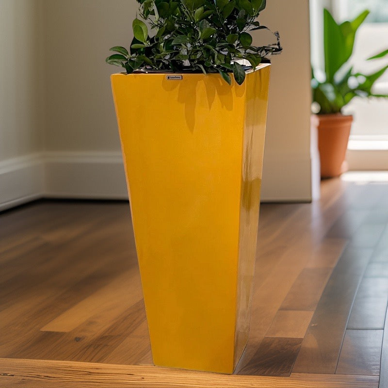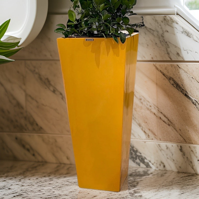23-47 ‘’Tall unique fiberglass planter - glossy yellow