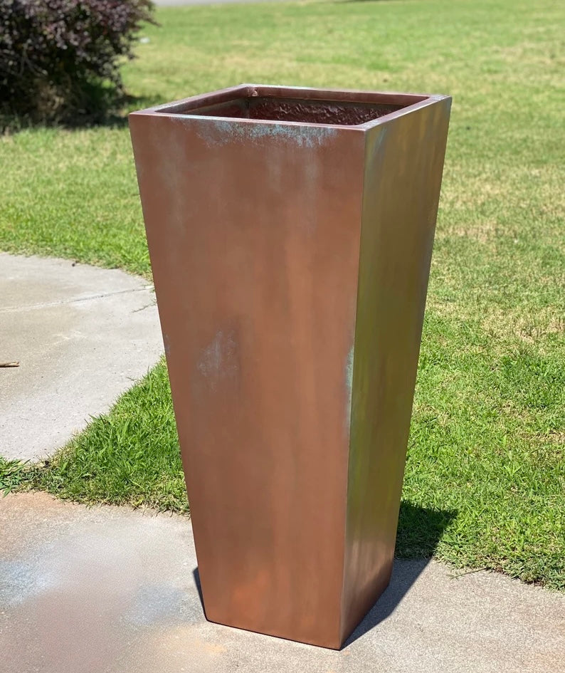 23-47 ‘’Tall unique fiberglass planter - rust copper