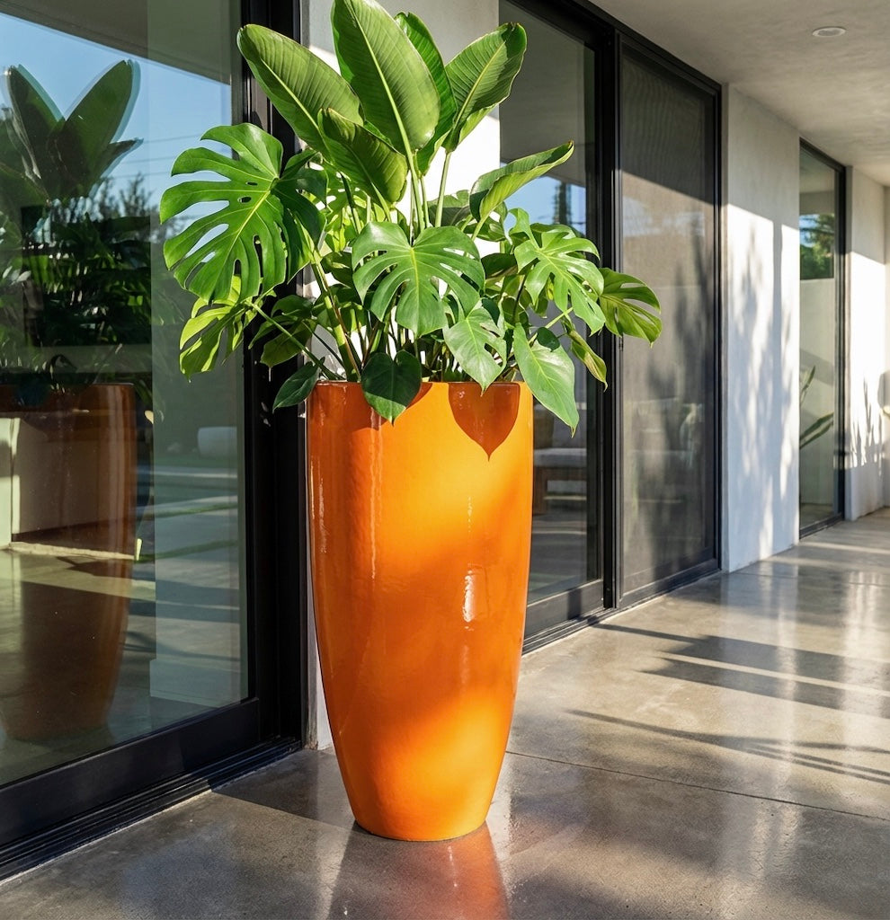 31-39 Inches tall fiberglass planter in glossy orange