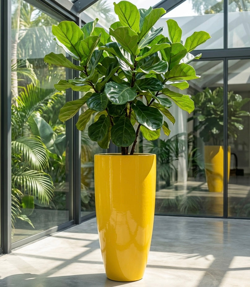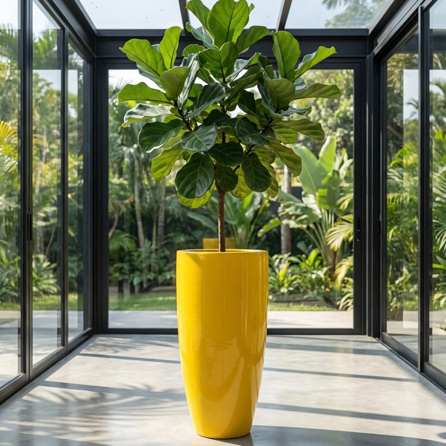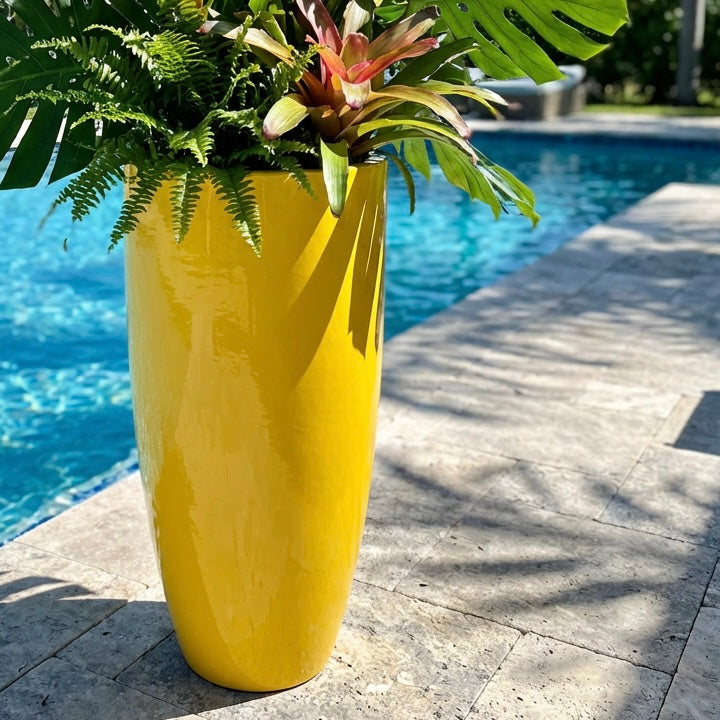 31-39 Inches tall fiberglass planter in glossy Yellow