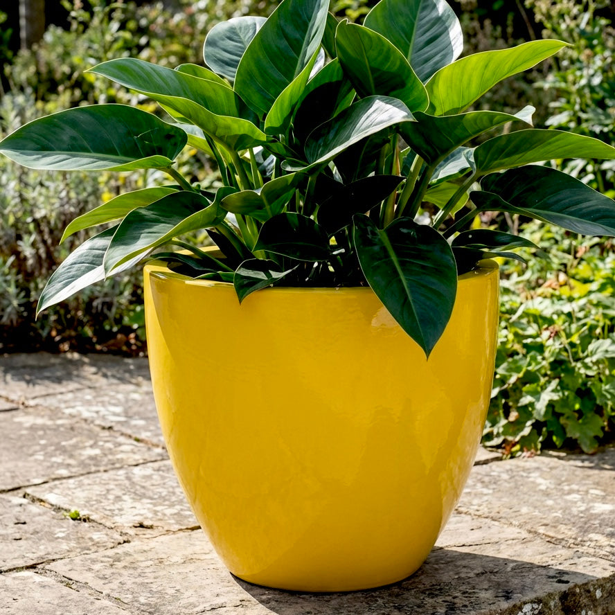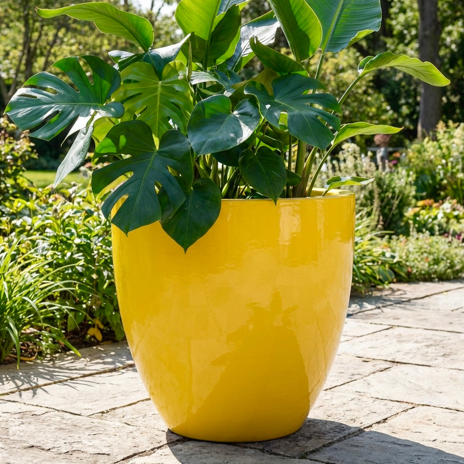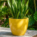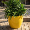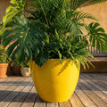 14-27 Inch Large Glossy yellow Fiberglass Planter: Modern Round Home Garden Pot.